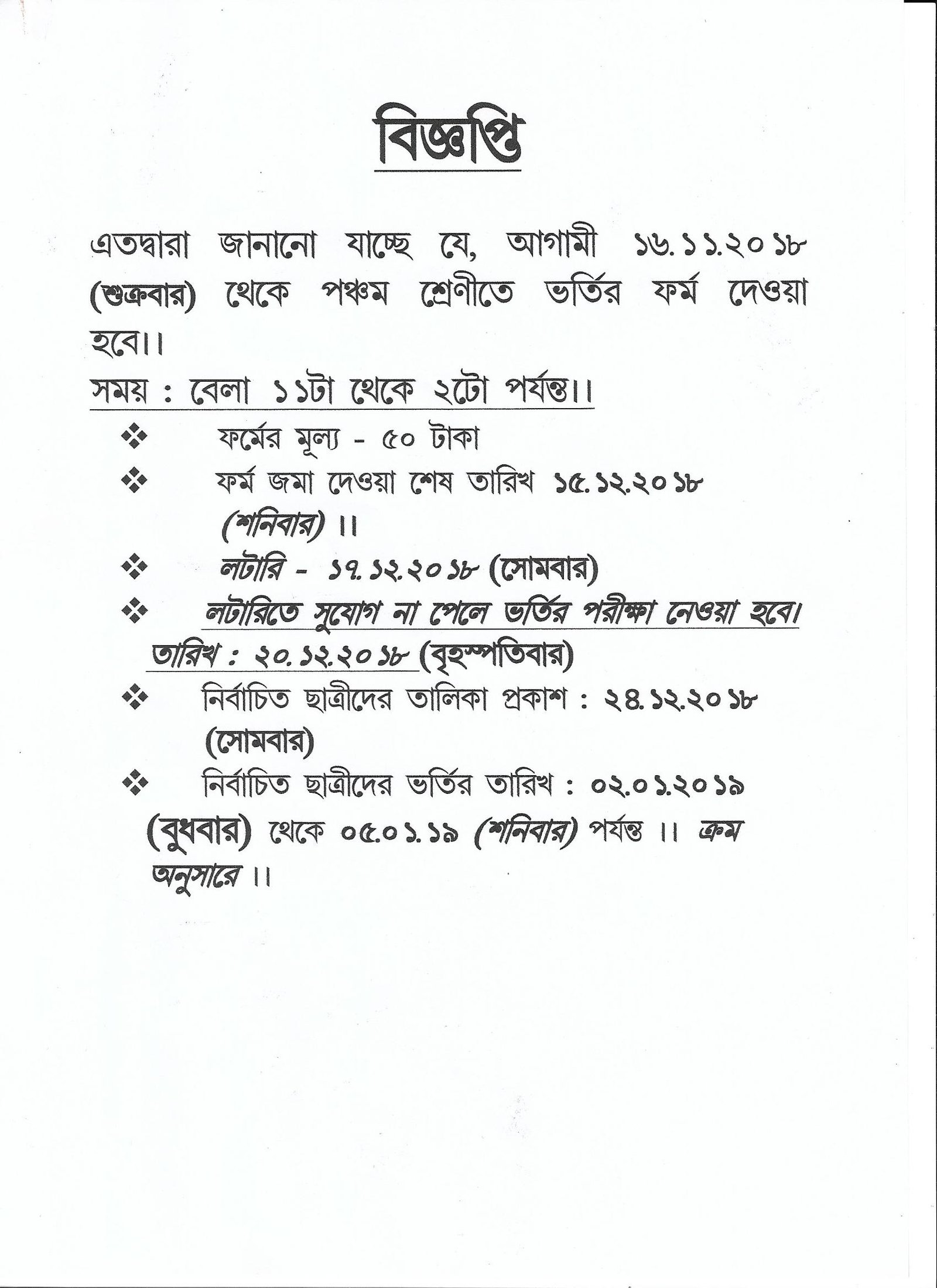 The Dates of Admission to Class XI -2018-19 Click Here to view more